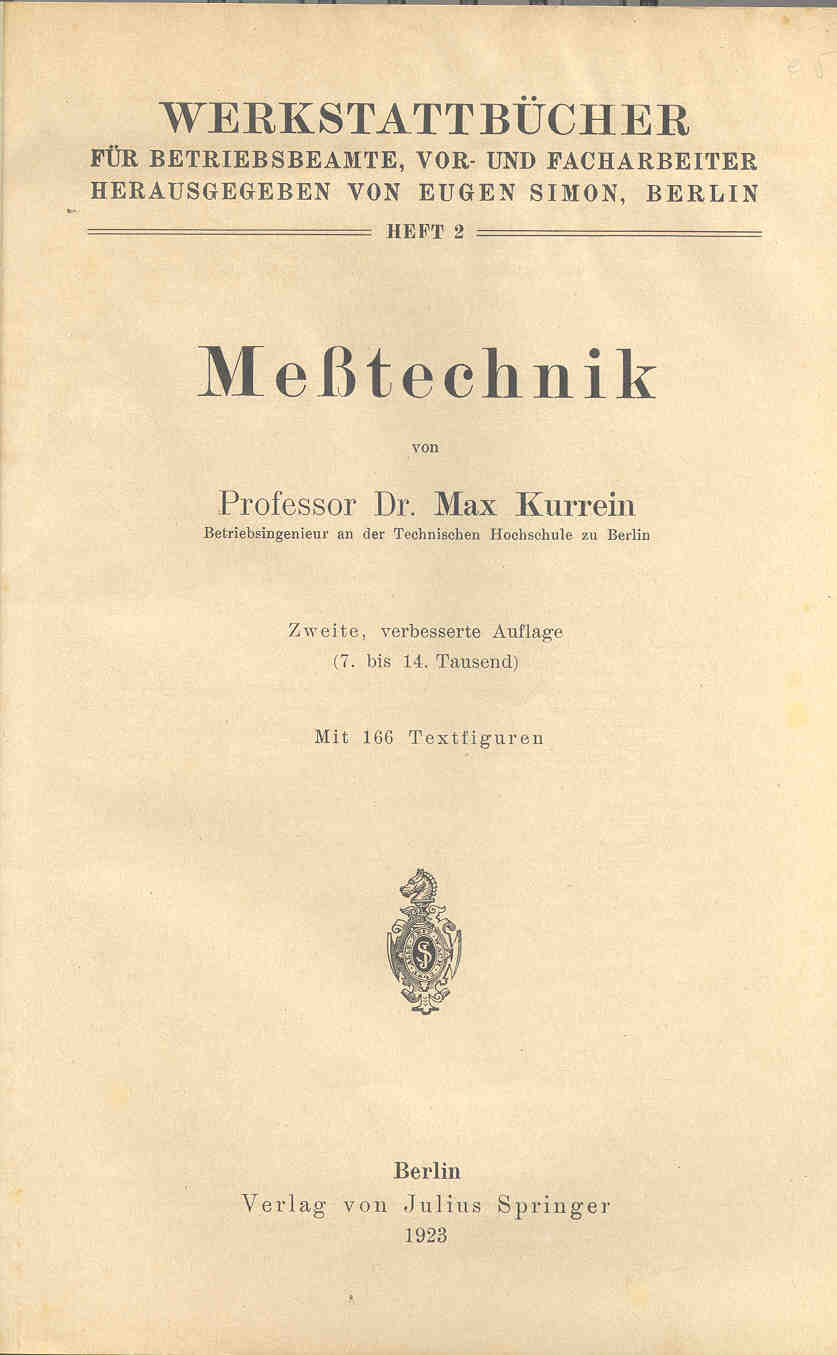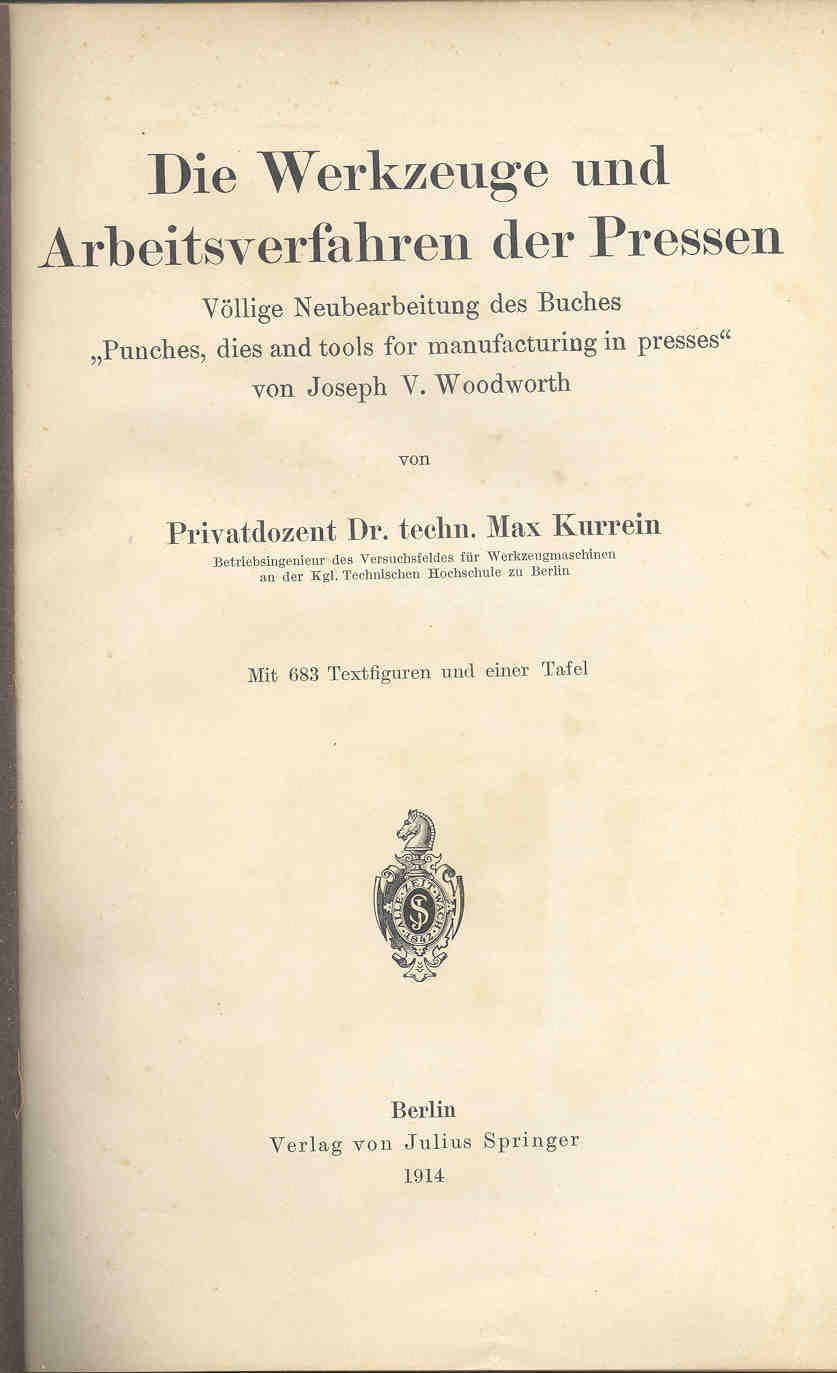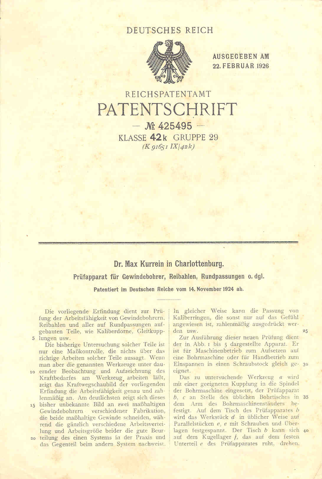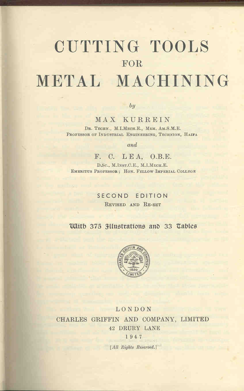 Max KURREIN was born in 1878 and began his technical education with five years in the Technical High School, Prague: there he gained his Dr. Techn. From 1900 to 1904 he was apprenticed in engineering works and towards the end of that time began teaching in the Technical High School, Brunn. He came to England in 1905 and from that date until 1909 was on the design staff of W. & T. Avery, & Co., Ltd., Birmingham. Returning to the Continent he was from 1909 to 1911 assistant to the head of the testing machine department of the Dusseldorfer Maschinenbau A.G. From 1911 to 1913 he was chief engineer of the Machine Tools Research Establishment located at the Technical High School, Charlottenburg, Berlin, where he carried out a great deal of vital research.