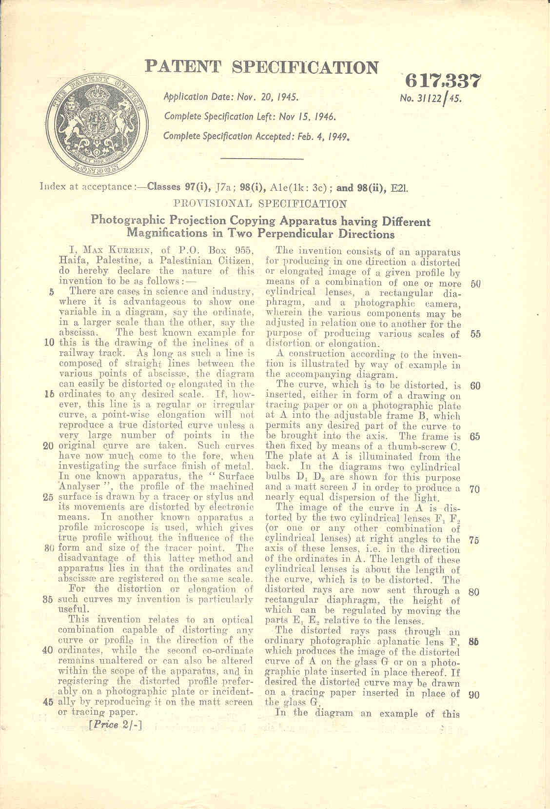 In 1934 Prof. Kurrein was responsible for the opening of the Machine Engineering Section of the Technion Haifa. There he was faced with almost overwhelming odds. For example, a new language, Hebrew, which at that time did not even possess technical terminology; very old equipment; and a serious lack of money with which to acquire modern machine tools and instruments. However, through following years and until his retirement as Dean of the Engineering Faculty two years ago, matters greatly improved. Equipment of the best has been installed and this division is the largest in the Institute.