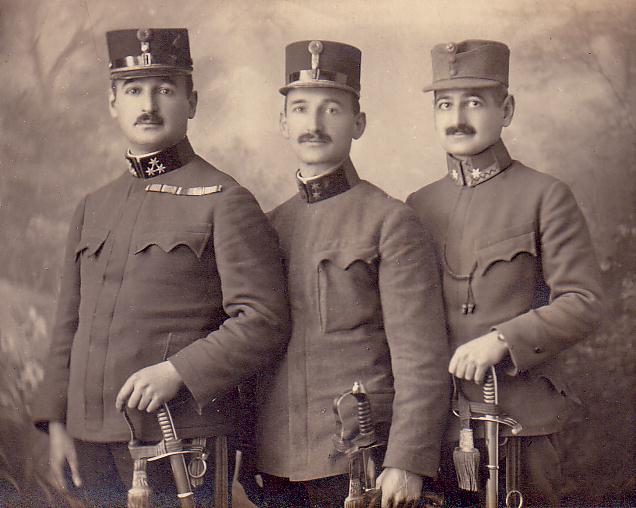 Max was conscripted into the Austro-Hungarian Army, together with his brothers. Clearly there was no "Jewish Problem" then! Here are Isidor, Max and Herbert in uniform. Isidor is in the Landwehr Schematismen of the day. He was a Regimentsarzt or medical officer in the rank of captain in the Austrian Landwehr having been promoted to such on the 1st of May 1917. Max holds the rank of an Oberleutnant, or 1st Lieutenant, whilst Herbert that of Fähnrich, or Cadet Officer. They all wear pike or field grey service dress uniforms and although not discernible from the photo, Max held the Golden Military Merit Cross with Crown amongst his other decorations.