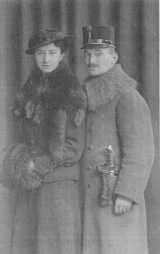 Max married Charlotte ("Lotte") BLAU, daughter of Dr. Louis BLAU and Bertha FISCHEL. Charlotte BLAU was born on 25 November 1894 in Berlin and died about 1978 in Haifa, Israel. Their engagement picture, below, was taken in 1917 when Max had been conscripted into the Austro-Hungarian Army to run a munitions factory.