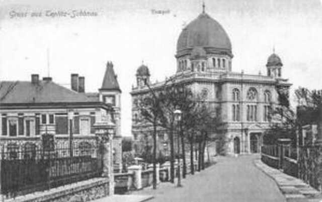 In October 1938 the town of Teplice was ceded to Germany. A great majority of the Teplice Jews, however, succeeded in leaving the town and the synagogue was abandoned from 9th October. In December 1938 the Teplice Mayor took some measures which enabled him to protect the property and closed the synagogue to avoid possible attacks from vandals. Together with the Reich Authorities he tried to find new a utilisation for this building. For the town which needed new municipal buildings the best thing to do was to transfer the town museum and the municipal archives etc. to this building and at the same time to make use of its space for concerts and theatre performances. This solution was also accepted by the Reich Administration. An attempt to preserve this magnificent building was thwarted by riots which took place during the night from 14th to 15th March. The synagogue was set on fire and totally destroyed by the next morning. Due to the damage the municipal Building Authority decided almost immediately on its demolition.